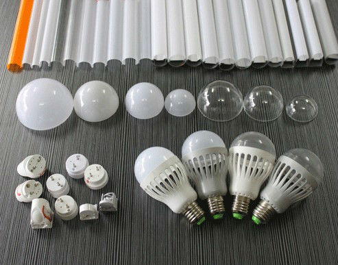 LED燈罩是俊爾近年來大力開發推廣的新型產品。俊爾依靠自身的技術實力,完成了原材料開發到成型加工等一系列技術試驗和測試,產品已成熟并成功推向市場,性能可與國外同類產品相媲美,且價格優勢明顯。主要產品有PC球泡、薄壁的光燈管、平板燈罩等,透光率在70%-96%范圍可調,霧度大于97%,完全可以滿足不同產品透光率和霧度要求。另外,產品還可適用于手機、交通信號、顯示屏、景觀裝飾等特殊照明領域。