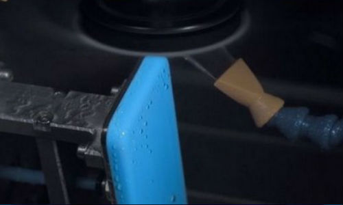 在完成鉆孔之后iPhone 5C后蓋需要進行非常精細的復雜打磨過程,包括透明漆硬涂層等等。此時打磨出來的半成品還需要經過抗刮擦測試才能裝備在iPhone5C上。Ive在視頻中說道:“整個生產制造過程的終點就是創建一個更加剛性堅實的結構,在到手之后不會有塑料的感覺。”