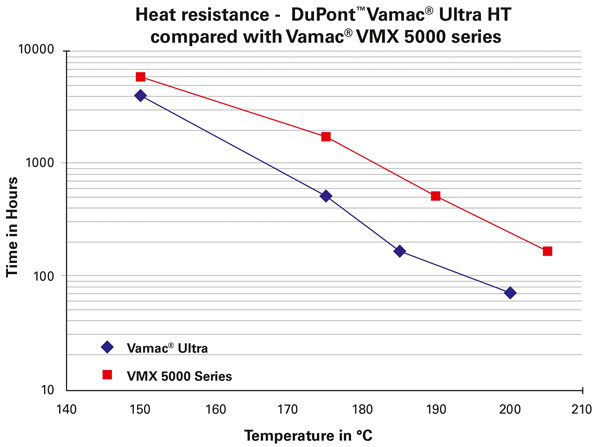 鏉滈偊鈩amac® VMX5000 AEM棰勬販鑳墮傜敤浜庨渶瑕佸湪楂樿揪190錕紺鐨勬俯搴︿笅浠嶈兘琛ㄧ幇鍑鴻壇濂芥ц兘鐨勫瘑灝佷歡鍜岃‖鍨佺┖姘旂鐞嗙郴緇熶互鍙婇珮娓╁喎鍗存恫杞淇濇姢濂椼備笌浜斿勾鍓嶄竴緇忔帹鍑哄嵆紜畾鍏跺叏鏂版ц兘鏍囨潌鍦頒綅鐨刅amac® Ultra娣風偧鑳剁浉姣旓紝Vamac® VMX5000娣風偧鑳跺皢娓╁害涓婇檺鎻愬崌浜?5鍒?0錕紺銆傚湪鐗瑰畾甯傚満棰嗗煙錛岃繖浜涗駭鍝佸彲浠ョ敤鏉ュ彇浠f渶緇堝簲鐢ㄦ俯搴﹁姹傝寖鍥村湪160錕紺鍒?90錕紺涔嬮棿鐨勬盁姍¤兌(FKM)娣風偧鑳躲?