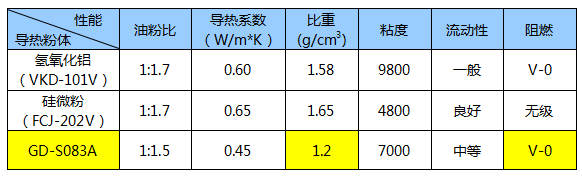 銆銆鐢辮〃1鏁版嵁鍙湅鍑猴紝鍚屾牱娣誨姞浠芥暟涓嬶紝浣跨敤GD緋誨垪浣庢瘮閲嶅鐑矇GD-S081A銆?GD-S082A鍒跺鐨勭亴灝佽兌姣旈噸鍧囦綆浜庢哀鍖栭摑銆佺寰矇錛岀患鍚堟ц兘鏇翠紭錛屽湪淇濊瘉瀵肩儹鎬ц兘鐨勫悓鏃訛紝闃葷噧鎬ц兘鍙揪鍒癠L 94 V-0銆?br /> 銆銆琛?錛欸D-S083A涓庢阿姘у寲閾濄佺寰矇鍒跺鐨勭亴灝佽兌鍚勯」鎬ц兘瀵規瘮