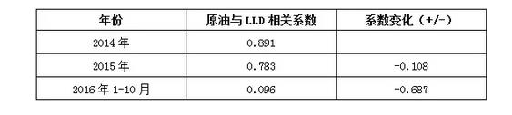 鐢卞浘鍙錛?013-2014騫村師娌逛環鏍煎浜庨珮浣嶏紝鍏朵環鏍艱蛋鍔夸笌鑱氱儻鐑冭蛋鍔垮熀鏈惢鍚堬紝2015騫存補浠鋒柇宕栧紡涓嬭穼鍚庣淮鎸佸亸浣庝綅榪愯錛岃仛鐑儍鍒╂鼎澧炲ぇ錛屼環鏍艱蛋鍔垮彈娌逛環褰卞搷鍑忓急錛屼互鑱氫箼鐑負渚嬶紝2014騫村師娌逛笌LLDPE鐩稿叧緋繪暟涓?.891錛?016騫翠袱鑰呯浉鍏崇郴鏁板噺灝戜負0.783錛岃?016騫達紝涓よ呯浉鍏崇郴鏁頒粎涓?.096銆?