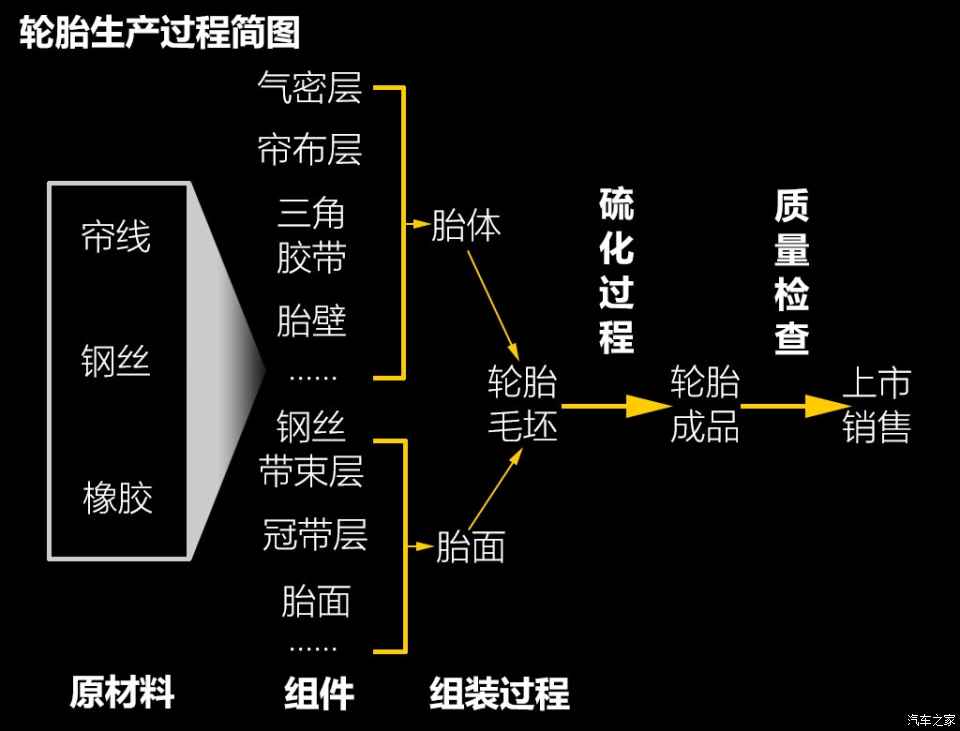 杞儙鐨勪富瑕佸師鏉愭枡鍖呮嫭緇勬垚甯樺竷灞傜殑甯樼嚎銆佺粍鎴愰挗涓濆甫鏉熷眰鐨勯挗涓濅互鍙?qiáng)鍚効U嶉厤鏂圭殑姍¤兌銆傝疆鑳庣殑鐢熶駭娑夊強(qiáng)鍒扮害10縐嶄笉鍚岄厤鏂圭殑姍¤兌錛屽寘鍚?5-20縐嶄笉鍚岀殑緇勪歡銆傝繖浜涚粍浠跺寘鎷皵瀵嗗眰銆佸笜甯冨眰銆佷笁瑙掕兌甯︺佽儙澹併佺紦鍐插眰銆佸啝甯﹀眰銆佽儙闈㈢瓑銆傚悇緇勯棿閫氳繃緇勮宸ュ簭緇勬垚杞儙姣涘澂錛岀劧鍚庨氳繃紜寲宸ュ簭瀵規(guī)瘺鍧繘琛屽姞娓╁姞鍘嬬~鍖栧鐞嗗艦鎴愯疆鑳庢垚鍝併傝疆鑳庢垚鍝佺粡榪囩洰?huà)箣浠ュ強(qiáng)鏈哄櫒鐨剫個(gè)鏌ワ紝鍚堟牸鍚庢墠鑳藉嚭鍘傘?