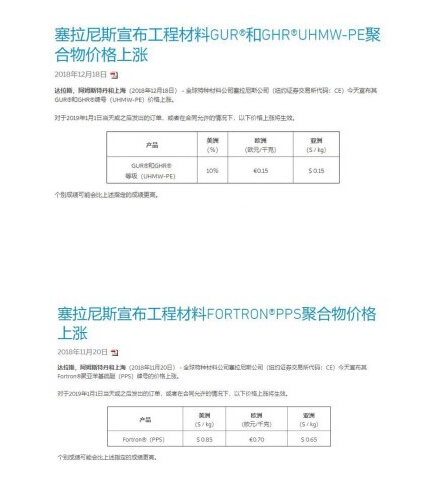 Fortron®PPS嬈ф床銆佺編鍥藉強浜氭床鐨勪環鏍間笂娑ㄥ垎鍒害涓?00嬈у厓/鍚ㄣ?50緹庡厓/鍚ㄥ強650緹庡厓/鍚?570嬈у厓/鍚?銆?/span>