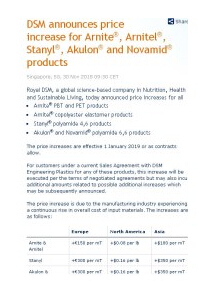 鑽峰叞鐨囧甯濇柉鏇煎叕鍙?Royal DSM)瀹e竷錛屼簬2019騫?鏈?鏃ヨ搗瀵瑰涓搧鐗岀殑浜у搧瀹炴柦娑ㄤ環銆?/span>