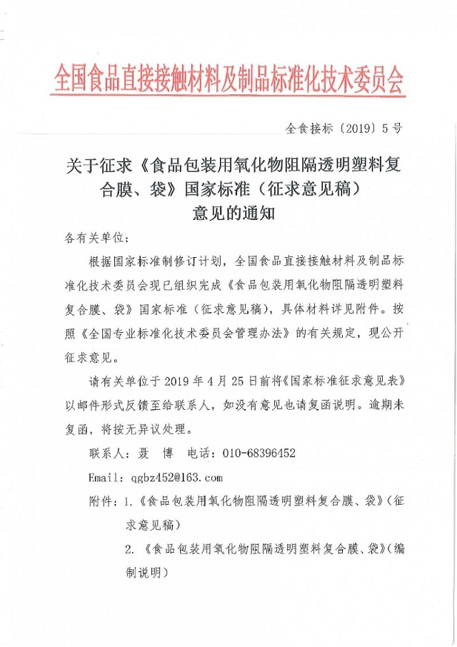 鍏充簬寰佹眰銆婇鍝佸寘瑁呯敤姘у寲鐗╅樆闅旈忔槑濉戞枡澶嶅悎鑶溿佽銆嬪浗瀹舵爣鍑嗭紙寰佹眰鎰忚紼匡級鎰忚鐨勯氱煡