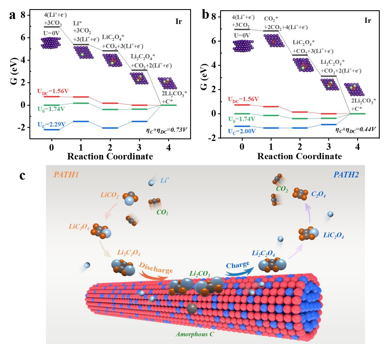 鍥? (a) 璁$畻Ir(111)涓奀RR鍜孋ER鐨?a) PATH1錛?(b) PATH2鐨勮兘綰у浘銆?/span> (c) 鍏呮斁鐢佃繃紼嬩腑鐢靛偓鍖栧弽搴旀満鐞嗙ず鎰忓浘銆?/span>