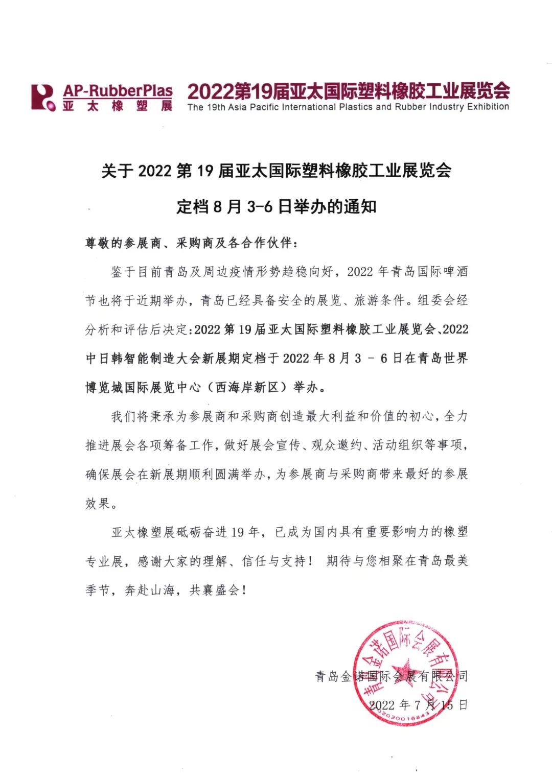 閲戣浼氬睍浣滀負闈掑矝24鏉′駭涓氶摼閲嶇偣浼佷笟銆侀潚宀涗細灞曡涓氱殑鈥滈澶撮泚鈥濓紝鑷粠瀹e竷2022絎?9灞婁簹澶浗闄呭鏂欐鑳跺伐涓氬睍瑙堜細寤舵湡涓懼姙浠ユ潵錛屾敹鍒頒簡璁稿闂欎笌鍏蟲錛屾劅鎭╀箣浣欎篃鎰熻阿澶氬勾浠ユ潵鍙傚睍鍟嗗強瑙備紬瀵瑰睍浼氱殑鏀寔涓庤偗瀹氾紝涔熸洿鍧氬畾浜嗕簹澶濉戝睍瑕佷負琛屼笟鎵撻犳洿涓撲笟銆佺簿鍑嗐侀珮鏁堛佸叏鏂逛綅鐨勫晢璐稿鉤鍙扮殑鍐沖績銆?