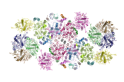 �˴��������IJ���PSII-LHCII�����ͺ���Ŀ��������s1.1�����D��megadalton����1,100 kDa�����γ���һ��ͬ�|�����w�ij������wϵ��ÿ�����w�а�����25�����ׁ�����105���~�G�ط��ӡ�28����}���ط��Ӻͱ���������o���ӡ��о��Y���״ν�ʾ���@һ�߶ȏ��s�ij������wϵ�Ŀ��w�Y���������������Ų�Ҏ�ɡ�