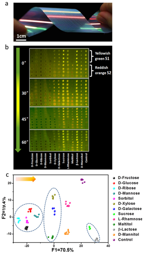 ���Mһ�����M���θ�Ч������R�e���g�İlչ�������Ƃ������ԵĹ��Ӿ��wĤ�����ڹ��Ӿ��w�Y��ɫ�ʵĽǶ���ه�ԣ��Y�Ϲ��Ӿ��w�ɹ�����Ч����ͨ�^��׃�z�y�ǶȌ��ɹ���̖�M�в���ŴĶ��@���S���ğɹ������Ϣ���D1����ͨ�^ؓ�d2�N�z�y�j���ԓ���Թ��Ӿ��wоƬ���Ա�ݵ��R�e�z�y12�N�߶����Ƶ��ǣ��D2�����@�N�ʺ�ɫ����оƬ���ö�Ƕȷ�����������˶���ϡ������з��ӵ�ʹ�ã��Ǿ���ͨ���ԵĶ�����R�e���ԡ����������ԺͿ�ӡˢ�Ե����c�����������ڿɴ��������������OӋ�c�Ƃ䡣ԓ�о��ɹ��l����Angew. Chem. Int. Ed. 2016, 55, 6911-6914�ϡ�