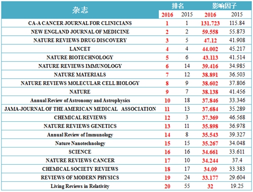 �cȥ����ȣ�����ǰʮ�����s־�г��F(xi��n)3λ�³ɆT���քe�����ڵ�6����NATURE REVIEWS IMMUNOLOGY��Ӱ�����39.416��ȥ�����ڵ�14����Ӱ�����34.985�������ڵ�7����NATURE MATERIALS��Ӱ�����38.891��ȥ�����ڵ�12����Ӱ�����36.503�������ڵ�10����Annual Review of Astronomy and Astrophysics��Ӱ�����37.846��ȥ�����ڵ�18λ��Ӱ�����33.346����