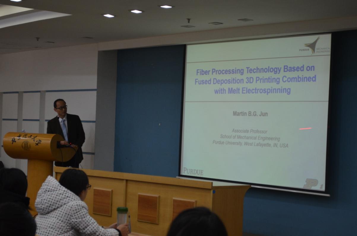 12��14̖���磬�ڇ��H�Cе�����I������ʢ�u�������ն���WMartin B.G. Jun�����ڱ���������W���ĕ��h�ґ����鎟�������}����Fiber Processing Technology Based on Fused Deposition 3D Printing Combined with Melt Electrospinning���ČW�g��档�����ɱ���������W�C늹��̌WԺ�������֡�