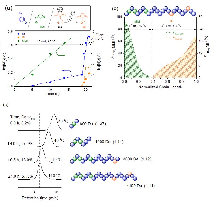 �K�ݴ�W�о��F꠰lչ�Ļ��ڝ��چ��w�������{�ز��Բ��������҆�Ԫ����������������૱��o���R�����������靓�چ��w������ϩ���鹲�ۆ��w�����ÿɿ����ɻ��ۺϷ����M�������{�ء�ԓ૱��o���R�����������چ��w�����ɻ��ۺϗl���£��Ȳ��ܾ��ۣ�Ҳ�o���c����ϩ�l�����ۡ������چ��w�c����ϩ����һ�����Ͷ�ϣ��������^�͵Ĝض��£�40 �棩������ϩ���w�_ʼ�M�о��ۣ����ɡ����ԡ��ľ۱���ϩ朶Σ�����һ�Εr�g�Ժ��ۺϷ����D�Ƶ��ߜأ�110 �棩�l���£�ԓ���چ��w�l����Diels-Alder������Ó��૱��o���F�����ɿɰl���ۺϵ��R�����������w���������c����ϩ�l�����湲�ۺϣ��Ķ����ɱ���ϩ/�R���������s���ľۺ���朶Ρ��ڿɿ����ɻ��ۺ��^���У�ͨ�^����ظ�׃�ۺϜضȣ���40 ��C110 ��C40 ��C110 �棩���Ɍ��R�����������wǶ��ۺ���朵�ָ��λ�ã��Ķ����F�����{�ء�