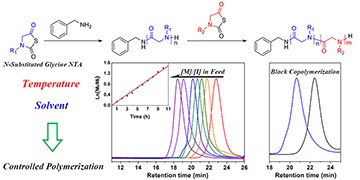 �����Mһ������С���Ӵ����������������l�����lSar-NTA��NEG-NTA�ۺ��Ƃ�ˮ���Ԧ�-�u��-��-��������ġ���ʹ��6-����-1-������12-����-1-ʮ���鴼�������l���r���҂��״��Ƃ�õ��˼����Ħ�-�u��-��-��������ģ��������ɿأ�1.3-12.4 kg/mol�����������ֲ��^խ��PDI < 1.3���������ۺ��^���Пo�茦���l���ϵ��u���M�б��o��Ó���o���E���@��NTA�ۺ�·�����صă��ݡ��@�N���в����Q���ܻ��˻����bצ�;���ľ������õ�ˮ���Ժ����������ԣ������ɞ�PEG�����Ʒ�������������tˎ�I��