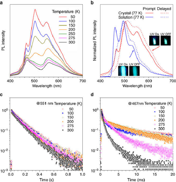 c) 50-300K��551 nm���l(f��)��ClBDBT �r�g�ֱ�PL˥�p����