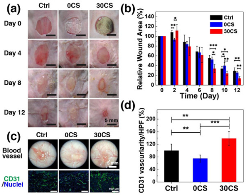 �о��F(tu��n)�(du��)ͨ�^(gu��)����ˮ�ᷨ�ϳɳ����~��Cu2S���{���������ÈD�����o늼��z�����ķ�ʽ�������~�{���w������ؼ���������߷����w�S��PLA/PCL����(n��i)�����x���D����(f��)���w�SĤ��CS-PLA/PCL���ڵ��ʽ��t��������¼���Ѹ�����ص�������ͬ�r(sh��)��������T��(d��o)Ѫ���������ܵ��ί����~�x�ӡ��@�N�Ƃ䷽ʽ��(ji��n)�����У�ʹ��ͬ���������~��(f��)��Ĥ�ܱ��������R����Ĵ�Y(ji��)��(g��u)��300��m�������܌�(du��)֧�ܵĹ�������M(j��n)����Ч�{(di��o)�أ��Ԍ�(sh��)�F(xi��n)��Ч����Ƥ�w�[����(x��)���Ĺ�Ч�����w��(n��i)�[���ί���(sh��)�(y��n)�У������~��(f��)��Ĥֱ���N���ں�ɫ��������Ą�(chu��ng)����λ�����ί��������ý��t�������(f��)���w�SĤ�������[��̎�ֲ��^(gu��)�ߟᣬ��Ч�����˺�ɫ���������L(zh��ng)�����ί�����ֹͣ�������䣬�l(f��)�F(xi��n)�[���](m��i)�Џ�(f��)�l(f��)��ԭ�еĄ�(chu��ng)����u���ϣ�����(du��)�սM�Ă��څs�S���[���������Ƶ����L(zh��ng)��u�U(ku��)���w��(n��i)���Ԅ�(chu��ng)���ޏ�(f��)��(sh��)�(y��n)�C��(sh��)��ԓ���~��(f��)��Ĥ�������д��M(j��n)���ڲ�λѪ���γɵ����ã��@�������Ƥ�w��(chu��ng)��������ٶȡ�ԓ�о���\����[�����ί��ṩ��һ�N��(ji��n)����Ч����������R���D(zhu��n)���Ͼ��ЏV韵đ�(y��ng)��ǰ����ԓ�о��ɹ��ھ��l(f��)����ACS Nano�ϡ�