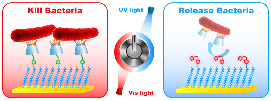 2014��؇������K�ݴ�W�������t�����ڌ���Kill-Release���@һ�O(sh��)Ӌ˼·�ƏV�������̼�푑��Բ����wϵ����������pH푑��Ծۺ���ۼ���ϩ�ᣨPMAA������м{���ؓ�Y(ji��)��(g��u)�Ĺ�{����У�SiNWAs�������ñ����^(q��)�Ļ��W�M�ɺ��ؓ�Y(ji��)��(g��u)�ąf(xi��)ͬЧ������(g��u)����һ�N����pH���F(xi��n)�����湦���M�����_�{(di��o)�أ����ԕrؓ�d�����������ԕr�������A�ԕrጷ��������������ܿ��������������P(gu��n)�о��ɹ������(n��i)����l(f��)����Adv. Healthcare Mater., 2016, 5, 449-456,�������I(y��)�W�g(sh��)�W(w��ng)վGlobal Medical Discovery�x��Key Scientific Article�����������������ù̶���ż������Azo�����F�ı���;��К������ܵļ��@�}���F���-�h(hu��n)������CD-QAS������(g��u)����һ�N��푑������ܿ���������CD-QAS�܉�ͨ�^�����w������c��ʽAzo�Y(ji��)�ϏĶ��x������Ч�Ě������ԣ�����(j��ng)�^UV���պ�Azo�ɷ�ʽ��(g��u)���D(zhu��n)׃?y��u)��ʽ�?g��u)�ͣ��Ķ�ʹCD-QAS�ı�����x���M�����������ı���ጷ�������Azo혷�����(g��u)���ĸ�Ч����ԓ�������ͨ�^��Ҋ�������Լ��ٴνY(ji��)��CD-QAS���F(xi��n)�����������P(gu��n)�о��ɹ��l(f��)����ACS Appl. Mater. Interfaces, 2017, 9, 25767-25774.��