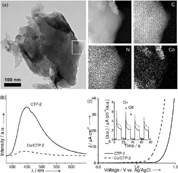 a) Co/CTP-2��TEM�D���Լ�C��N��CoԪ�طֲ���