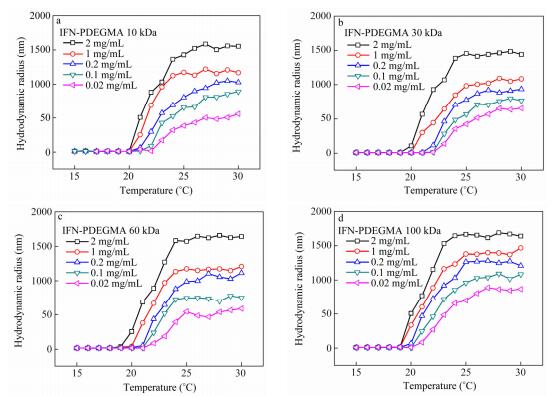 ���ȣ��������ö��cԭλ���L(SIG)���g���ϳ��ˏ�IFN-��̼-ĩ�����L�Ļ��WӋ���Ȟ�1��1��IFN-PDEGMAż���ͨ�^�{�����w�͵������l���ı����@����һϵ�в�ͬ��������IFN-PDEGMA�����PDEGMA��һ�N���Мض�푑��Ե��PEG�ۺ�����������õ����������Ժ����D׃�ضȿ��{�ԣ����J���������N-��������ϩ����(PNIPAM)�����͜����Ը߷��ӡ��D2�@ʾ���õ���IFN-PDEGMA�������õĜض�푑��ԣ��@�f�������Üض�푑��Ծۺ���������܉��x�走���|ż���µĜ����Թ��ܡ�