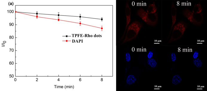 ��TPFE-Rho dots�cSK-Hep-1���������B4h���ڼ������^�쵽���ҵļtɫ�ɹ⡣�ڼ���������8min��TPFE-Rho dots�ğɹ⏊�ȃH�½��˲���10%���@ʾ�����õĹⷀ���ԡ�����ԓ�tɫ�ɹ��܉�һֱ���mۙ������������11�����D3��������ӛ��TPFE-Rho dots��SK-Hep-1�����ӷN������Ƥ�£��ɹ���̖��ۙ��19�죨�D4�����@Щ�Y��������TPFE-Rho dots����������t��ɹ�{��̽ᘌ��F���w���L�ڌ��r�ıO�y�[�����L��