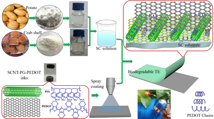 ���գ���I��W��������M�w�S�c���ܼ��g���c����ҏ��d����ڈF��ڡ��������W�����ò����c���桷(ACS Applied Materials & Interfaces)�ϰl���}�顰Biodegradable Transparent Substrate Based on Edible Starch-Chitosan Embedded with Nature-Inspired Three-Dimensionally Interconnected Conductive Nanocomposites for Wearable Green Electronics�����о�Փ�ġ�