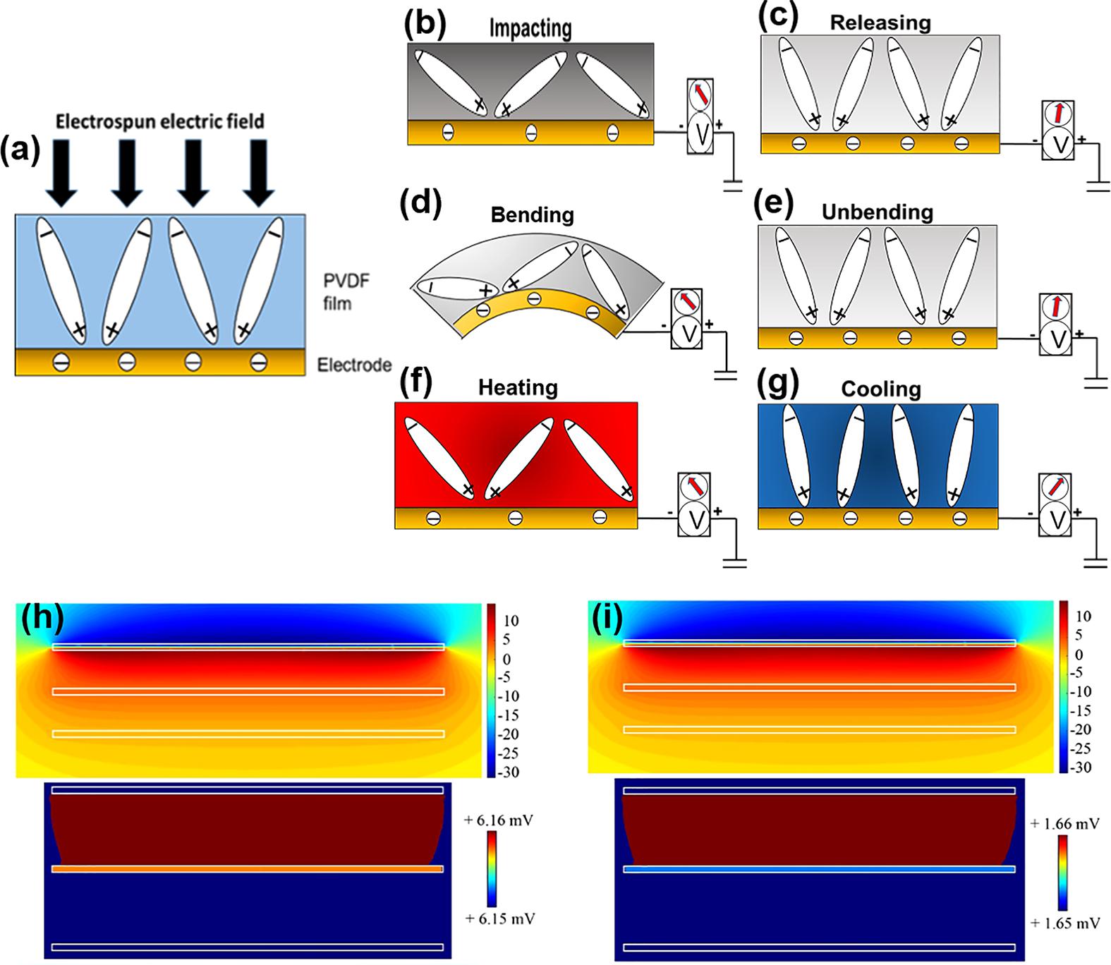 �D4.��ͬ�l�������Ƥ�w���_·늉���̖��(a) 0.1 Hz���µ��؏͉��s�_����(b) ��ͬ�ĉ����£���ͬ��Ĥ��e��(c) ������ͬ��Ĥ��e��������ͬ��(d) �ڷ��͉��s�_��60��犣�(e) 0.8��Ɲ���͏����Ͳ�������(f) ����ͬ�Č��Ȝض���ʩ����ͬ�Ĝضȡ�(g) �ڲ�ͬ�ij�ʼ�ض���ʩ����ͬ�Ĝض��ݶȡ� (h) ��ͬ�l����PVDF��I.V�����ضȡ�