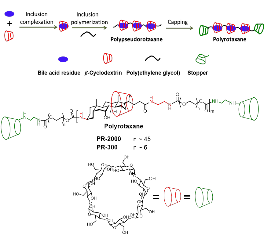 2016���Z���ⲩʿ������Ľ��ں����v�h����-đ��������w�����ӌ���������ģ�K���Ƃ���һ�N�ɽ���ľ�݆�鳬����ģ��---�����朡��������Ȍ�đ����Ӻ��Hˮ�ľ��Ҷ����s�۵õ���һ���朿��w�ۺ������S���ٺͭh���������R�e������Ƶ�ԓ��������ԓ�����朾��кܺõ�ˮ���Ժ͜�����������׃�ضȿ���ͨ�^��׃�h�������Ӻ�đ���Ԫ�ı�����������ԓ�����朵���ò��STM���C��������ԓģ�;��кܺõĽ������������������Լ��h��������߀���б���Ŀɹ����λ�c��ʹ��ԓ��݆��ģ�Ϳ��Ժܺõ�������y�ľ۱�ϩ��-�h������݆�飨Molecular Necklace: Threading ��-Cyclodextrins onto Polymers Derived from Bile Acids. Angew. Chem. Int. Ed. 2016, 55, 11979-11983)��