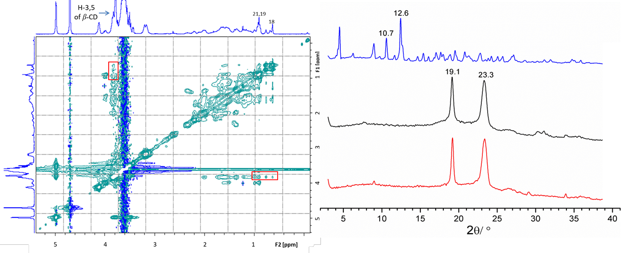 �D2. ��݆�����Һ��2D NOESY NMR���̑B��Powder XRD������
