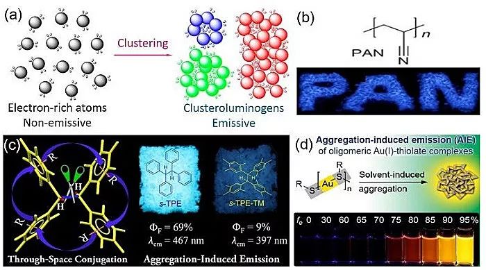 ���y�İl�����ͨ�����дh��й�ܗ�wϵ����lɫ�F��Ȼ���������Խ��Խ��ķdz�Ҏϵ�y���������AIE���ԡ�����һЩ���и����ԭ�ӣ�N��O��S��P������F��-C=O��-C=N-��-COOH���ķǹ�ܗ�Y���ĹѾ���;ۺ������Һ�в��l�⣬���ۼ�֮�ɰl�⡣���ǣ��о�������ˡ��ؾ��T���l�⣨clusteration-triggered emission��������J�鸻����ӵ�ԭ�ӻ���F��������ھۼ��r�دB�����Ӄȵ��\���ܵ��ۼ������ƣ��Ķ��S�w�l�⡣���^������ϱ���ęC���в���ȫ�����