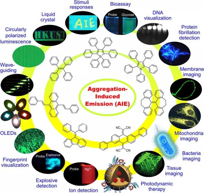 AIE�����ڂ��кͳ����I��đ���Ҳ�о��������绯�W������������̽ᘵ��Ƃ䡣AIE�����ھۼ��B���к��Ŀ���Ư���ԣ��@ʹ�������ɞ����õ����������ϡ����⣬AIE����߀���������\����ί��I�������[���������خ��Գ����Լ����Y�Ĺ�ᯟ���ȵȡ�