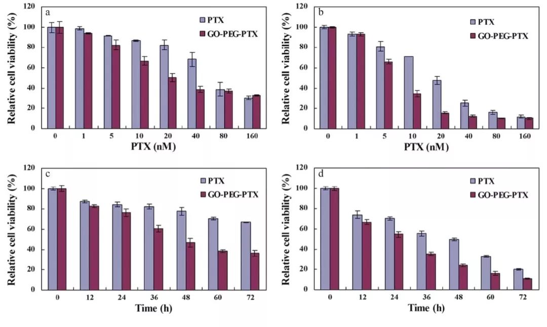 ���S�����S�ۺ������ˢ���Ƃ��mȻ�������@�M(j��n)���������������Ļ��W(xu��)�����ԡ��ڟo�C(j��)���κ�ƽ��Y(ji��)��(g��u)�ϸ�Ч�ɿص�����ۺ�����������һ�(xi��ng)����(zh��n)�����Ƕ��S�����S�ۺ������ˢ���ڽY(ji��)���˟o�C(j��)�{�Y(ji��)��(g��u)���|(zh��)�Ĺ��ܣ�����ԣ���W(xu��)����Ӻ͙C(j��)е���ܼ��ۺ�������|(zh��)�������̼�푑�(y��ng)�ԡ�����ˮ�Ժͷ����Եȣ���ˣ����нY(ji��)��(g��u)�����Ժͅf(xi��)ͬЧ��(y��ng)���@�(f��)���wϵ���J(r��n)����һ��ЏV����(y��ng)��ǰ���Ĺ��ܲ��ϡ���ˎ���\(y��n)ݔ�d�w���棬ԓ�n�}�M�Ƃ��˻�������������GO-PEG/PTX�ͻ��ڹ��r(ji��)�I�B�ӵ�GO-PEG-PTX�����о��������ļ�(x��)������(�D4��5)���c���x��PTX��ȣ���ͬˎ������GO-PEG/PTX�Լ�GO-PEG-PTX�ļ�(x��)�����Ը����d�wGO-PEG��(du��)��(x��)�������]�ж��ԣ��dˎ�wϵ�ļ�(x��)��������ȫ����ؓ(f��)�d��PTX��