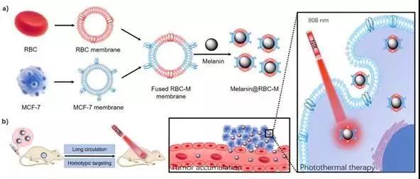 Erythrocyte-cancer hybrid membrane-camouflaged melanin nanoparticles forenhancing photothermal therapy efficacy in tumors, Biomaterials 2019, 192: 292-308.