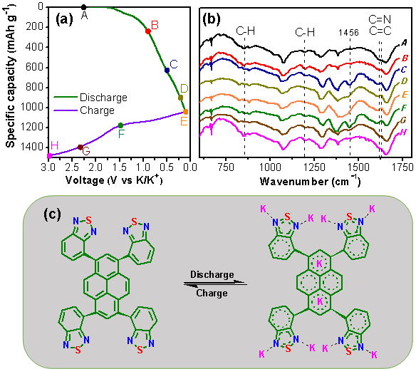 �������źͱ��������?y��n)�?g��u)����Ԫ��(g��u)���Ĺ�ܗ�ۺ���PyBT����е͵�LUMO�ܼ���խ�Ď�϶�;����LUMO܉���ֲ������c(di��n)���Ķ����F(xi��n)���ߵă�������̓�(y��u)����ѭ�h(hu��n)�ԣ��D3������30 mA/g������ܶ��£�PyBT���F(xi��n)�����_(d��)420 mAh/g�Ŀ������������50 mA/g������ܶ���ѭ�h(hu��n)500�κ��Ծ���270 mAh/g�Ŀ���������������M(j��n)һ��ͨ�^�t����V�о���PyBT�ă�⛙C(j��)�����Y(ji��)��������(g��u)����Ԫ�źͱ������������F(xi��n)���߶ȿ���ă���������D4����ԓ�о��������H���O(sh��)Ӌ�ϳɾ��и߃�������Ĺ�ܗ�ۺ���늘O�����ṩ����Ч���O(sh��)Ӌ���ԣ�ͬ�rҲ�Ƅ��˶�ۺ�����늻��W(xu��)�����I(l��ng)��İl(f��)չ��