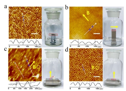 �ʟoҎ�ķ���Y��; (b) �ڴ��F����ˮƽ�ڻ��������£�Ƕ�ι������ش��������\�ӣ��ԽM�b�Y����߶��������ƽ������; (d) �ڴ��F������ֱ�ڻ��������£�������ԽM�b�����γ�������ĈA�������Y��; (c) ���F�����c���׳�45�ȽǕr��a���ɂ��������еĻ�ϡ�