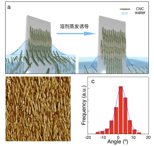 CNC���ڱ���O�ԏ�������늺����ߣ�����ˮ�з�ɢ�r�׳�đ��Һ���ࡣ��ֱ�����ӳ�Ĥ��CNC�ĽM�b�Y�����������ԣ�ʹ�䌦��ľ�����Y���p������ˣ�ԓ����ͨ�^���l�T����ֱ�M�b�ķ�ʽ��ʹCNC��ë�����c�����������Fȡ��M�b���������ԣ���D2a��ʾ�����Mһ��ͨ�^�{���M�bǰCNC��ɢ��B���M�b�^���܄����l���ʣ��Ɍ�CNC��еĽǶȷֶȰ�匒�sС��6.73o����D2b��2c��ʾ����