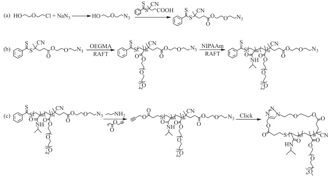 κ�A�����n�}�M�ڡ��߷��ӌW(xu��)��(b��o)��2019���3�ڡ��߷�������W(xu��)�ߡ����l(f��)����Փ������չ��һ�N����RAFT�ۺϵĺϳɭh(hu��n)��Ƕ�ι�����ķ���������ͨ�^(gu��)�B�m(x��)�ɲ�RAFT�ۺϺϳ���ĩ�˞�B�����F(tu��n)���p�H�Ԝ�����Ƕ�ι�����PNIPAAm-b-POEGMA��Ȼ��ͨ�^(gu��)һ偷�����-�~�ˠ��ӳɴ�(li��n)����(y��ng)��(du��)��RAFT���F(tu��n)�M(j��n)����Ȳ������ȫ��ˣ����ͨ�^(gu��)�Oϡ�l���·��Ӄ�(n��i)�c(di��n)�����W(xu��)�h(hu��n)���ϳɵõ���Ŀ��(bi��o)�h(hu��n)���p�H�Ԝ�����Ƕ�ι�����c-(PNIPAAm-b-POEGMA)���M(j��n)һ��ͨ�^(gu��)һϵ�Ќ�(du��)���о����l(f��)�F(xi��n)�h(hu��n)��������p�H��Ƕ�ι�������бȾ��Ծۺ�����ߵ��^���R���ܽ�ض�(LCST)�������ԽM�b�z�����и�С��������խ�������ֲ���