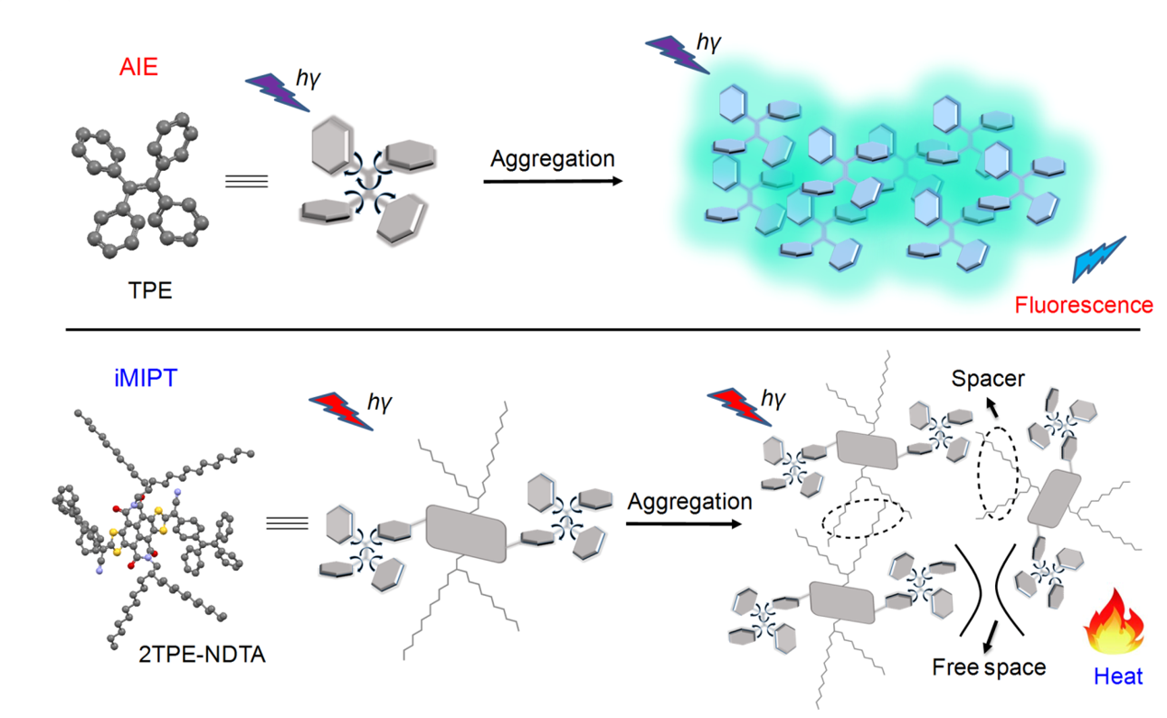 �D�����ۼ��T��(d��o)�l(f��)��(aggregation-induced emission, AIE)�c���Ӄ�(n��i)�\(y��n)���T��(d��o)����D(zhu��n)��(Intramolecular moiton-induced photothermy, iMIPT)����Č���ʾ��D.
