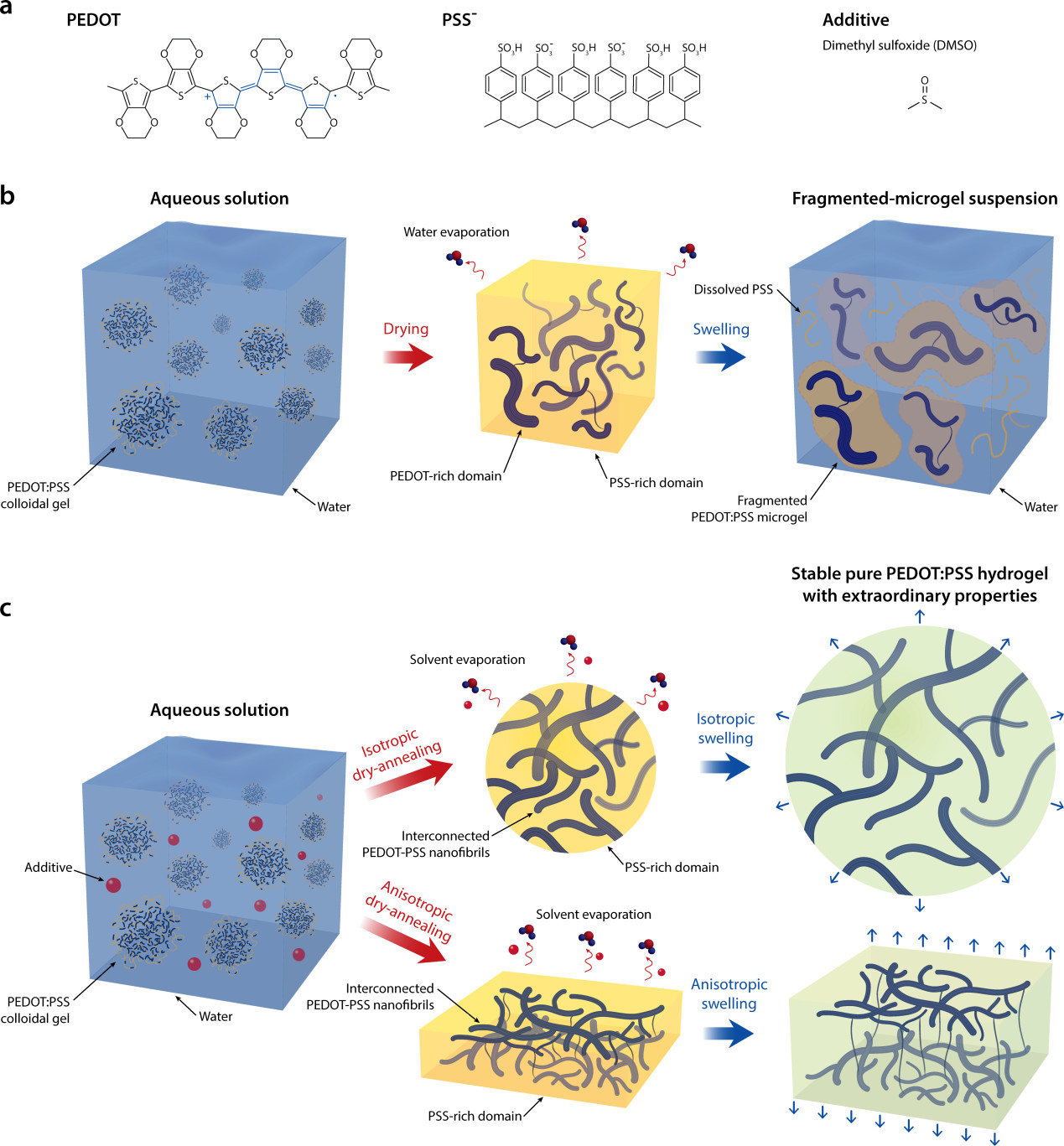 ��ʡ�����WԺ�Cе����ϵ�w�x�R���ڈF��c�����Ƽ�������W�쾰�������n�}�M�������°l����Nature Communications�ϵ��о�Փ�ģ�Pure PEDOT:PSS hydrogels, Nature Communications 2019, 10, 1043. Link: https://rdcu.be/bp4cy�������һ�N������Ч���Ƃ�����܌�늾ۺ���ˮ���z�ķ�����ԓ����ͨ�^���ӿɓ]�l�O���܄���DMSO��̎��PEDOT:PSSˮ��Һ���������Mһ������PEDOT�cPSS������x��ʹ��a���ֲ�����ļ{���w�S���W�j�Y�����M��ͨ�^����ԓ�Y����ˮ�wϵ�е���Û�О飨��Ҫ���Hˮ��PSS����Û���ɫ@�÷����ļ�PEDOT:PSSˮ���z���D1����