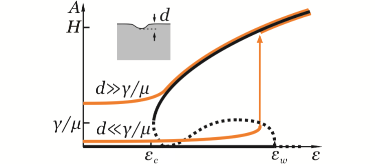 ���գ������W(xu��)�i־�����ڽM����ʡ��W(xu��)Hayward���ڽM������ȫ�µ�ë��(x��)�����ް�ģ�ͣ�Elastocapillary Crease����Q�������_ͻ��ԓģ�Ϳ����ÈD3��ʾ�ĺ�����·����(l��i)��ʾ����?y��n)���揈�����A��ʹ����⻬��ǰ���м��J�ײ����ޠ�������ơ��б��揈���r(sh��)��Hohlfeld��Mahadevan���A(y��)�y(c��)���ޠ�ֲ��c(di��n)����(f��)���ڡ������w��K�ڲ���ֲ��c(di��n)ʧ��(w��n)���D3�{(l��n)�G·�����c(di��n)���R�瑪(y��ng)׃��w �����ֲ�֮��IJ��������(w��n)������(hu��)�l(f��)���ۯB���D3��ɫ·�� �����γ��ޠ���D3�tɫ·���������w�ۯB·���c����l(f��)�����|֮����揈����׃�����P(gu��n)���D3�Ǽ��O(sh��)������|��o(w��)�������������ޠ�R�瑪(y��ng)׃����c �������x���ޠ���ڵ���͑�(y��ng)׃���༴�ޠ�ɲ���(w��n)��׃?y��u)鷀(w��n)���Ĺ��c(di��n)���D3�tɫ·���Ĺ��c(di��n)����(sh��)����̓�����D(zhu��n)�Q�c(di��n)����ԓ���c(di��n)����(du��)��(y��ng)���ް������ģ����Ψһ�������߶ȡ���ë��(x��)���Գ߶ȡ����Q����ë��(x��)���Գ߶ȵĶ��x����揈���úͼ���ģ����֮�Ȧ�/�̡�