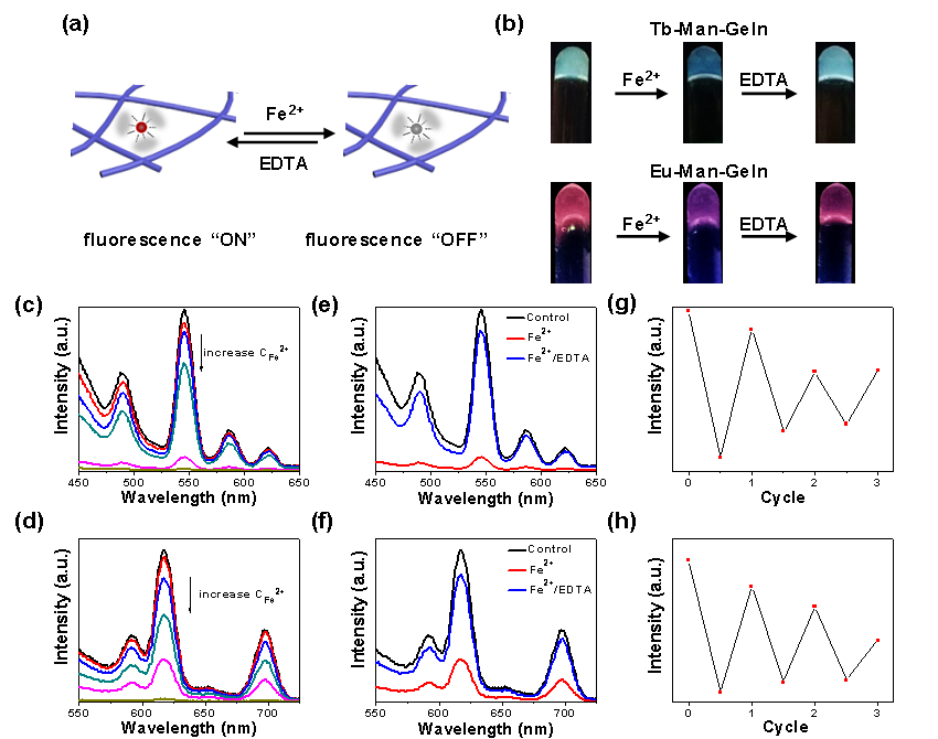 Ke Meng#, Chi Yao#, Qianmin Ma, Zhaohui Xue, Yaping Du, Wenguang Liu, Dayong Yang*. A Reversibly Responsive Fluorochromic Hydrogel Based on Lanthanide�CMannose Complex. Advanced Science, 2019, 1802112.