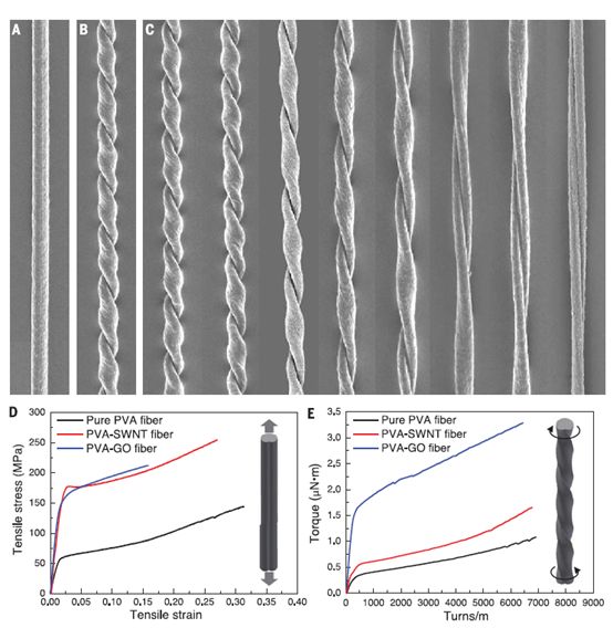 ��ͬ�ڵ�Science�У�����Universit�� de Bordeaux��W(xu��)��Philippe Poulin���ں�Jinkai Yuan���ڈF(tu��n)ꠌ�����ϩ���߷����w�S�Y(ji��)���������g(sh��)�͡��Π�ӛ����ԭ�����Ƃ��˾�����ƽ��ܵ����D(zhu��n)ʽ���˹������w�S����ͨ�^���s̼�{�ܺ�ʯīϩ�������W(xu��)���ܺ��(q��)�����ܴ������ߡ���PVA�w�S�ӟᵽ����ض�(Td�����ڲ������ض�Tg~80 ��C)������Td=100 ��C�£���PVA������֮�أ��Ϳ����푪(y��ng)���̶�ס���ٌ���ӟᵽԓ�ض��£��Ϳ��Ԍ��F(xi��n)�푪(y��ng)����ጷš�ͨ�^ʹ��һ����ƽ��ĽY(ji��)��(g��u)����������ȵı����ʡ���������ʯīϩ(GO)�͆α�̼�{��(SWNT)��������(qi��ng)�(q��)�ӱȹ��ʺ��(q��)��Ť�ء�