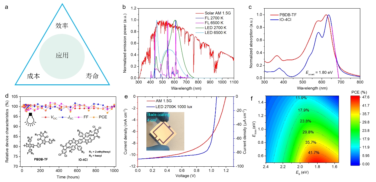 ������ڇ�����Ȼ�ƌW(xu��)����ί���Ї��ƌW(xu��)Ժ��֧���£����W(xu��)���߷��������c���W(xu��)��(sh��)�(y��n)�Һ�x�о��T�F(tu��n)�(du��)�����о����l(f��)չ���ЙC(j��)���늳����҃�(n��i)���µđ�(y��ng)�á�ԓ�F(tu��n)�(du��)�O(sh��)Ӌ(j��)�ϳ������ͷǸ���ϩ���wIO-4Cl���c�ۺ���o�wPBDB-TF��ϣ��@�������չ��V�c�҃�(n��i)��Դ��ƥ��Ĺ���Ԍӡ�ʹ��2700 K��LED�������Դ����1000 luxݗ�Տ�(qi��ng)���£�1 cm2늳ص��_·늉��_(d��)��1.10V����(sh��)�F(xi��n)��26.1���������D(zhu��n)�QЧ�ʡ�