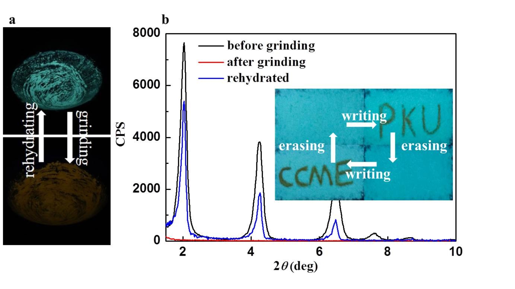 ��Ȥ���ǣ�ԓ�wϵ�еĽY��ˮ�ڟo�_��B�·dz�����������һ���Ĝغ͗l���¿���ȥ�����ӟ���90��C����������ĥ�����ⴵ�ߣ������Ԍ��Y��ˮ���wϵ���Ƴ�����ͨ�^��ͬ;��ʧȥ�Y��ˮ�IJ�ͬ������λ�wϵ���ʬFһ�µ��Sɫ�ɹ⡣����PBFL���ӵ���ˮ�ԘO�����Sɫ�İl���wϵ�����l�ĭh��������ˮ����������L�_���±��ַ�����ֻ����ˮ-�Ҵ��ȘO�Ի���܄�Ѭ����ֱ��̎��r���Sɫ��ĩ�ğɹ�ŕ��֏͵���ͬ�����wϵ֮ǰ���ɫ�������@�N�����ğɹ����׃���������ԣ��n�}�M�����@һ�Y��ˮ�{�صğɹ�l���Ƃ���������ɷN����ģʽ�Ŀ���������ϡ�����PBFL-Mg�ğɹ��ܽY��ˮӰ����������PBFL-Mg�wϵ�������M���˿ɲ��������OӋ�������нY��ˮ�r���wϵ�ʬF�������{ɫ�ɹ⣻���ß�P�����r���������{ɫ�����ϵõ��Sɫ�����E���D4�������ò������ڳ����¡��䌑���r����ĥ�����ʧˮҲ���������Sɫ���E���D5����