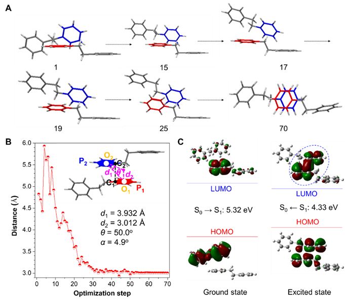 ���Y���C�������������ռ��l��֮����l�����l�B�ķ����g�\�ӣ��@�N�\�ӕ��a��һ�N�µ���N�����ذl�����ɫ�F������Ū�����N�ĽY�������ߏ�s-DPE��s-DPE-TM�ľ��w�Y���зքe���x��һ�������w�M�м��l�B�ĽY����������D5A��ʾ��s-DPE�Ķ����w����һ��������õĽY��ͨ�^�����g�\���γɼ��l�B�Ŀ��g�ͺ��� (excited-state through-space complexes, ESTSC)���D5B�@ʾ�ڃ����^���з����g�ľ��xԽ��Խ����ͬ�r��ESTSC�c���B�Ķ����w�Y����ȣ����ӵĎ�϶�l�����^��ĜpС���C��ESTSC�д����^���Ŀ��g��ܗ����Ҫ�f�����ǣ�ESTSCҲ��������Һ�B�®a�������@�N�Y�����چη����^������ɶȲ����ܷ������ڡ����ھۼ��B�£��ۼ��a�������ޭh�����Է���ESTSC�ĽY�����M���T���ذl��Įa����