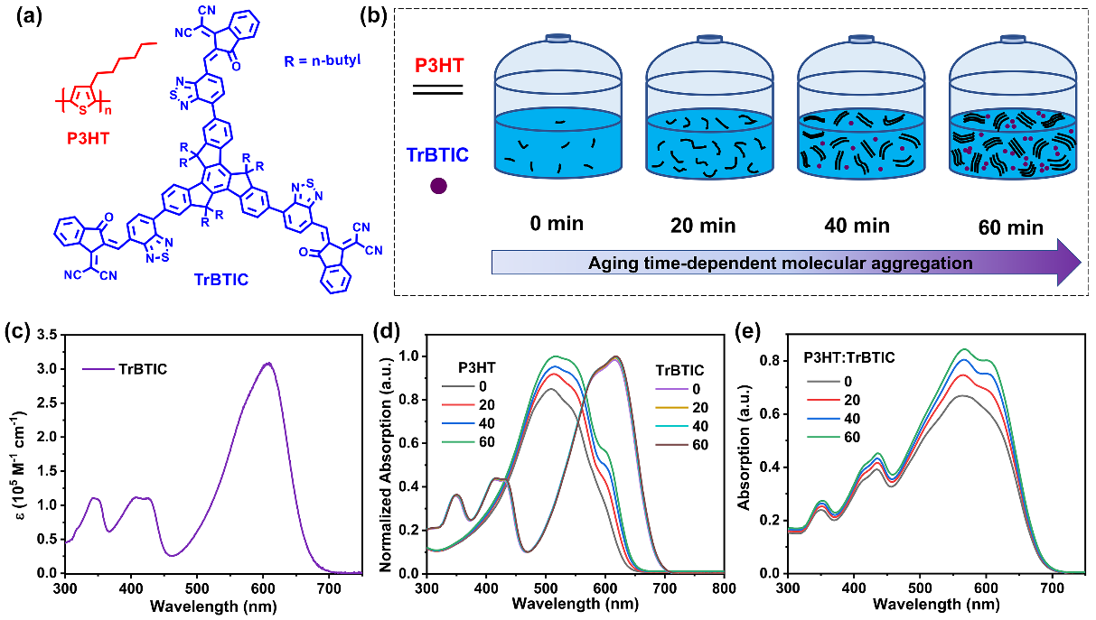 ᘌ��������}���Ĵ���W�폊���ڈF��������ᣨtruxene����ˣ����������-�����M��ͪȱ늻��F����˻����ϳ���ȫ��С�������wTrBTIC���cP3HT���죬�Ƃ��˸����ܷǸ���ϩ�ۺ����ЙC̫���늳ء�TrBTIC����1.80 eV�Ĺ�W��϶�Լ�-5.56/-3.62 eV�����ռ��܉��/��Ϳ�܉����HOMO/LUMO���ܼ����cP3HT�γ��^�õ����ջ��a���ܼ�ƥ�䡣�������Ƃ��^���У������l�F��P3HT�܉��ڟᣨ60 ������1,2,4-���ױ���TMB���кܺõ��ܽ⣬�����Ҝؗl����P3HT�������ؾۼ��������@һ���ԣ�ԓ�F�ͨ�^�{���܄����Ҝ��µ��ϻ��r�g������P3HT:TrBTIC����Һ�е��A�ۼ������܄��ϻ�40��犺��Ԍӫ@�������������x��ò������D�QЧ�ʏ�6.62%�@��������8.25%���ɞ�Ŀǰ����P3HT���ЙC̫���늳ع���D�QЧ�ʵ��¼o䛡�ԓ����ʹ���˾Gɫ�܄������ҟo����ӄ����κκ�̎����ˇ���@�N���θ�Ч���Ƃ䷽��������δ�����̘I�����a����ͳɱ��������ܵķǸ���ϩ�ЙC̫���늳ص���ò�{�غ����������ṩ���µĽ�Q˼·��