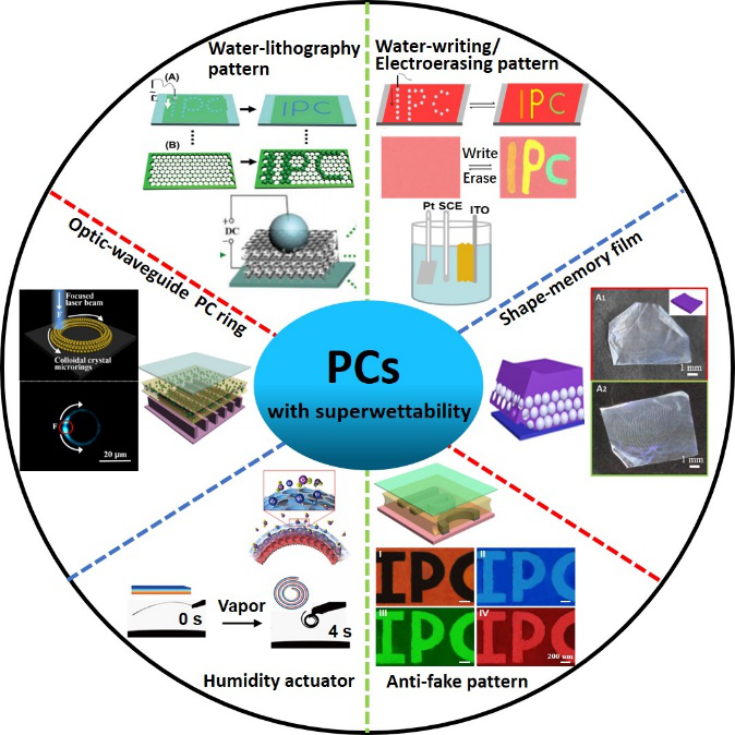 ������x�����Ӿ��w���������x����Ъ��ع�W�{�����ܵĹ��Ӿ��w�����ڂ������z�y���������@ʾ���ӵȷ�������ã�Chem. Soc. Rev., 2016, 45, 6833�������������������c����ƌW���c����ҵĽ���Ժʿ�F�����ϼ�о��T�ھ��г������Թ��Ӿ��w���Ƃ估���÷���ȡ��ϵ����Ҫ�Mչ�������Y������������Ժ�ˮ��ģ�壬�Ƃ��˻����������Ӿ��w��Adv. Mater. Interf, 2015, 2, 1400365; Chem. Comm., 2015, 51, 1367; 2016, 3619; J. Mater. Chem. C. 2015, 3 ,2445; 2018, 6,3849�����ó��Hˮ���ļ�����ˮģ���γɵ������������������Ƃ�õ��������ùⲨ���О�Ĺ��Ӿ��w��У�ACS Applied. Mater. Interfaces, 2016, 8, 4985�������ý���-�ЙC������ʯ�Y����늽�����r�µĪ��ص���ò��׃���l(f��)չ��ˮ���Ƃ���Ӿ��w�D�����·���(Adv. Funct. Mater., 2017, 27��1605221)���Y���܄��T��Ч���c늻��W�{������PEDOT���Ӿ��w�ό��F�����ˮ��/늲���ɫ�⾧�D��(Adv. Funct. Mater. 2019, 29 1808473)�����Mһ������PVDF�Ƃ�ض��T�����Π�ӛ�����ܵķ�����ʯ�Y����Ĥ(ACS Applied. Mater. Interfaces, 2018, 10, 4243)��ͨ�^���ù��黯̼�c�����⻯�W�M�ɼ��]������ʯ�Y��������H�Ͳ������������Ƃ����܄��đ����WͿ��(ACS Applied. Mater. Interfaces, 2018, 10, 6701)�����ΈD��(Nanoscale, 2018, 10, 4642)�������{��Һ�����Ӿ��w�Ƃ����e���|�����Ӿ��w�D��(J. Mater. Chem. C., 2019, 7, 9460; 7, 13764) ͨ�^�ݶ���䷨�Ƃ��Janus �;ۣ��x��Һ�w-����ϩ������������ﷴ����ʯ���Ӿ��wĤ���ж��������О�(Chem. Commun. 2016, 52, 5924; ACS Nano, 2018, 12, 12149-12158)��������Һ�������w�Ƃ�Һ���Ӳ��ϣ�J. Mater. Chem. C., 2019, 7, 3413; Soft Matt. 2018, 14, 5547��