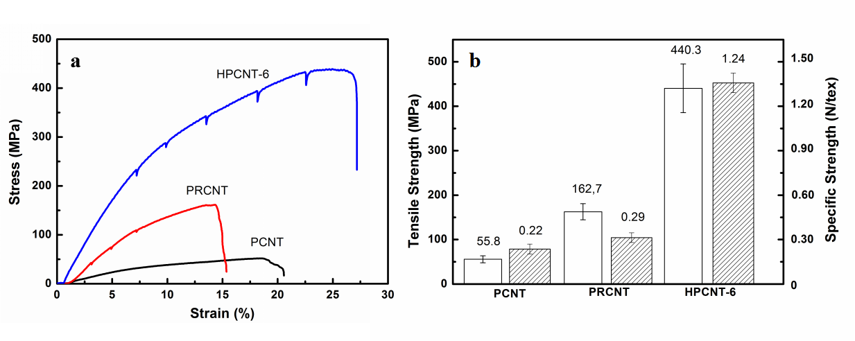 ������Ϣ��Qian Duan#, Shuangyuan Wang#, Qiufan Wang, Ting Li, Sufang Chen, Menghe Miao, Daohong Zhang*. Simultaneous improvement on strength, modulus and elongation of carbon nanotube films functionalized by hyperbranched polymers, ACS Appl. Mater. Inter., 2019, 11(39): 36278-36285. DOI: 10.1021/acsami.9b12368.