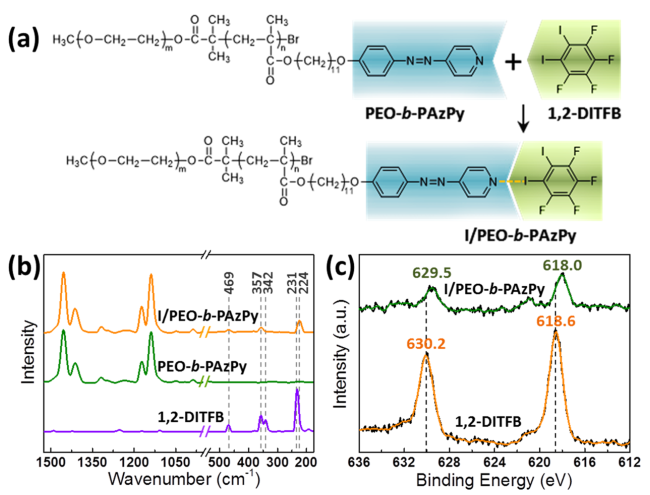 ������С�����u�I���w1,2-�����ķ�����1,2-DITFB�����뵽��(c��)机�ż����ऻ��F(tu��n)��AzPy���ķ�Һ��Ƕ�ι�����PEO-b-PAzPy�У�����1,2-DITFB�cAzPy���(y��u)���W(xu��)Ӌ(j��)����1��1�Ƃ���u�I��(f��)����I/PEO-b-PAzPy�������������V��XPS���t����V���˴Ź�����V�ȱ����ֶ��C��(sh��)�ˏ�(f��)�������u�I���γɡ������ܶȷ�����DFT��Ӌ(j��)��o���ˏ�(f��)������(y��u)������ģ�ͣ����_�����u�I���I�L(zh��ng)���I���c�I��(qi��ng)�����|(zh��)���C��(sh��)�ˏ�(f��)�������u�I�O��(qi��ng)�ķ����ԡ�