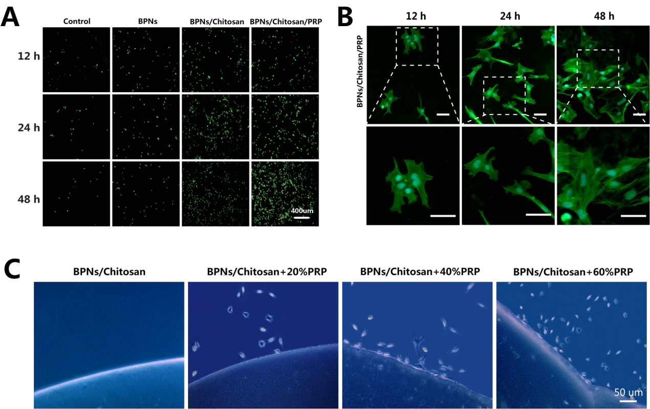 ���о��Mһ���U����BPNs/Chitosan/PRP����ˮ���z��BPNs�Ľ����Ժͽ���r�g���Ă�����C�˺��{��Ƭ�����ﰲȫ�Ժ��w�ȿɽ�������ͬ�r���OӋһ���������w�Ƚoˎ�r�g�ṩһ���Č���֧�֡�