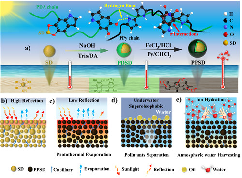 ������о��ˆT��ǰ�ڹ����Ļ��A�ϣ��ܵ����պ�߅ɳ���ضȸ��@һ�F��Ć��l��ͨ�^���߷��Ӳ��ό���Ȼɰ�ӵķ������ԣ��x���䃞���Ĺ���D�Q���������Y��ɰ�Ӿۼ��r���l�γɵĿɳ��m��ˮ��ë�������ԣ��lչ��һ�N���ڷ�������ɰ�Ӿۼ��w�Ķ�ܹ�ᵭˮ�ռ�����Nano Energy, 2020, 68, 104311���������F���ڶ�N���íh���еĵ�ˮ�ռ����D1������Ȼ��ɰ��Ҫ�ɶ�������M�ɣ������S�������ڲ��ܳɞ齨���Oʩ�еĽY�����ϣ���˃r��������ڱ��о��У��^������Ȼɰ�ӱ���ľ۶�Ͱ���PDA���ȿ��Գ䮔�t�⾀���Մ����ֿ��Գ䮔��Ч��ճ�τ���ͨ�^������ú͚��I���ɳ�Ӻ;�������PPy�����Ķ��γɽY�����������и߹���D�������ĺ�ɰ��polypyrrole/polydopamine/sand��PPSD�������⣬ɰ�ӵľۼ��О�ʹ���l�γ��׳߶ȵ��ԽM����϶���@�ӵĶ�Y�������Mһ���a��ë������������ˮ��ɳ�ӵײ�����픲����@����������Ч�Ĺ�ˮͨ�����D2����