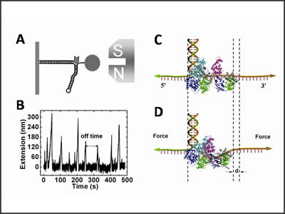 �ڵ͵����|(zh��)����£������^�쵽��һϵ�Іδ�DNA�����^�̣��l(f��)�F(xi��n)�����ɴν����^�̵ĕr�g�g���Ƀɂ����B�IJ����^�̿��ƣ��o����UvrD�p�w����ģ�͵Č���C��(j��)���e�ǣ�����߀�о������������UvrD����Ч�ʵ�Ӱ푣��l(f��)�F(xi��n)������DNA���_�ăɂ���朶��c����ʹDNAʧ��(w��n)��������������ԓ����ø�Ĺ������@�c��ǰ����^��T4����ø[PNAS,104 (2007) 19790]��T7����ø[Cell,129 (2007) 1299]�����@�^(q��)�e���f��UvrD��һ�����������ÙC�Ƶ��R�_���ס��Y(ji��)���ѽ�(j��ng)�����UvrD����ø�ľ��w�Y(ji��)��(g��u)��������(sh��)��(j��)�Լ��������Y(ji��)�������������һ�N��׃?n��i)��x�����w�f(xi��)ͬ����ģ�͡������J��UvrD���w��2B�ӹ������c�p�DNA�Y(ji��)�Ϻ���ֹ�������Ҳ�����f�С����i��Ч������Ҫ��һ��UvrD�c֮�Y(ji��)�ϣ��γɶ����w������һ��UvrD��2B�ӹ������cǰ��һ��UvrD��2B�ӹ�����o�ܽY(ji��)�ϣ�������i�����Sǰһ��UvrD��ɽ������ܡ����^�̌��´��^ԓ�����w��DNA����γ�50�����ҵď��ۣ�������տs�s0.5-1.0 nm�������W�Ƕȿ����˽����^����Ҫ�˷������������Ķ����½����ٶ��S���������Ӷ����͡�